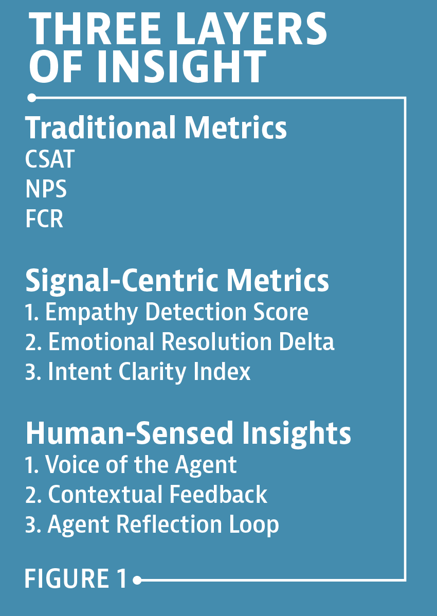 If we want to architect a better contact center, we need to blend three layers of insight (see FIGURE 1):