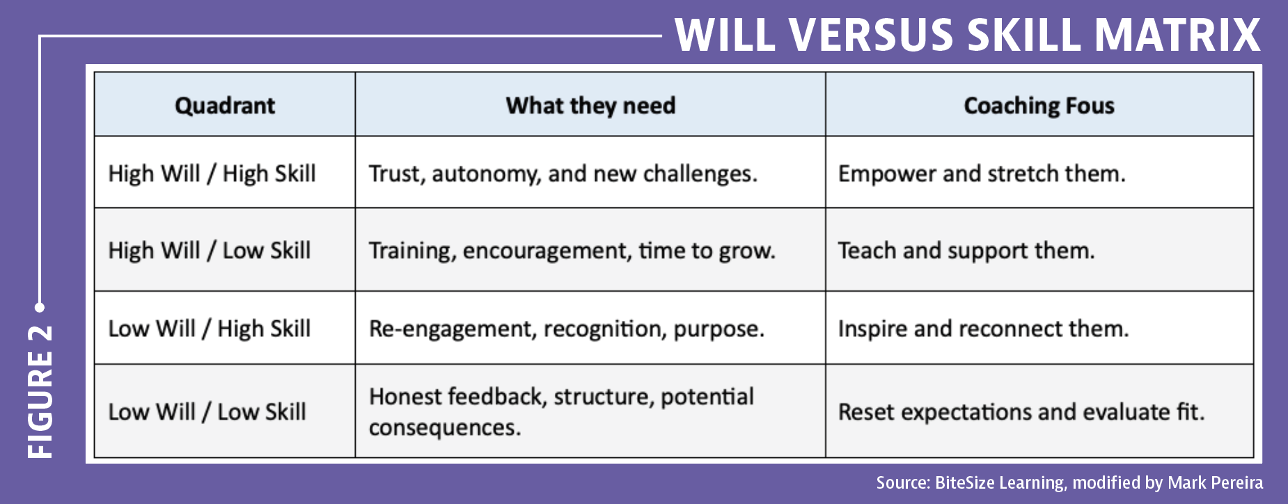 Using the Will vs. Skill Matrix in your coaching prep helps you match your strategy to their reality: and sets you both up for more productive, empathetic conversations.